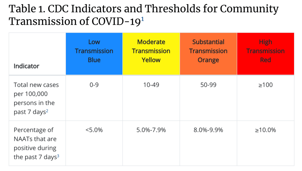 - Table 1 (above) gives guidelines to determine the level of community transmission. Using the official data from the March 25 World Health Organization Uzbekistan Situation Report, I calculated Tashkent currently has a “low” or blue level of transmission.With a 7-day average of approximately 100 cases per day in a city of 3 million people, that equals 3 cases per 100,000 people. Today, March 27, we had 143 cases in Tashkent, a high daily total for 2021. That raises it to 5 cases per 100,000 people, which is getting closer to the yellow or moderate transmission category.