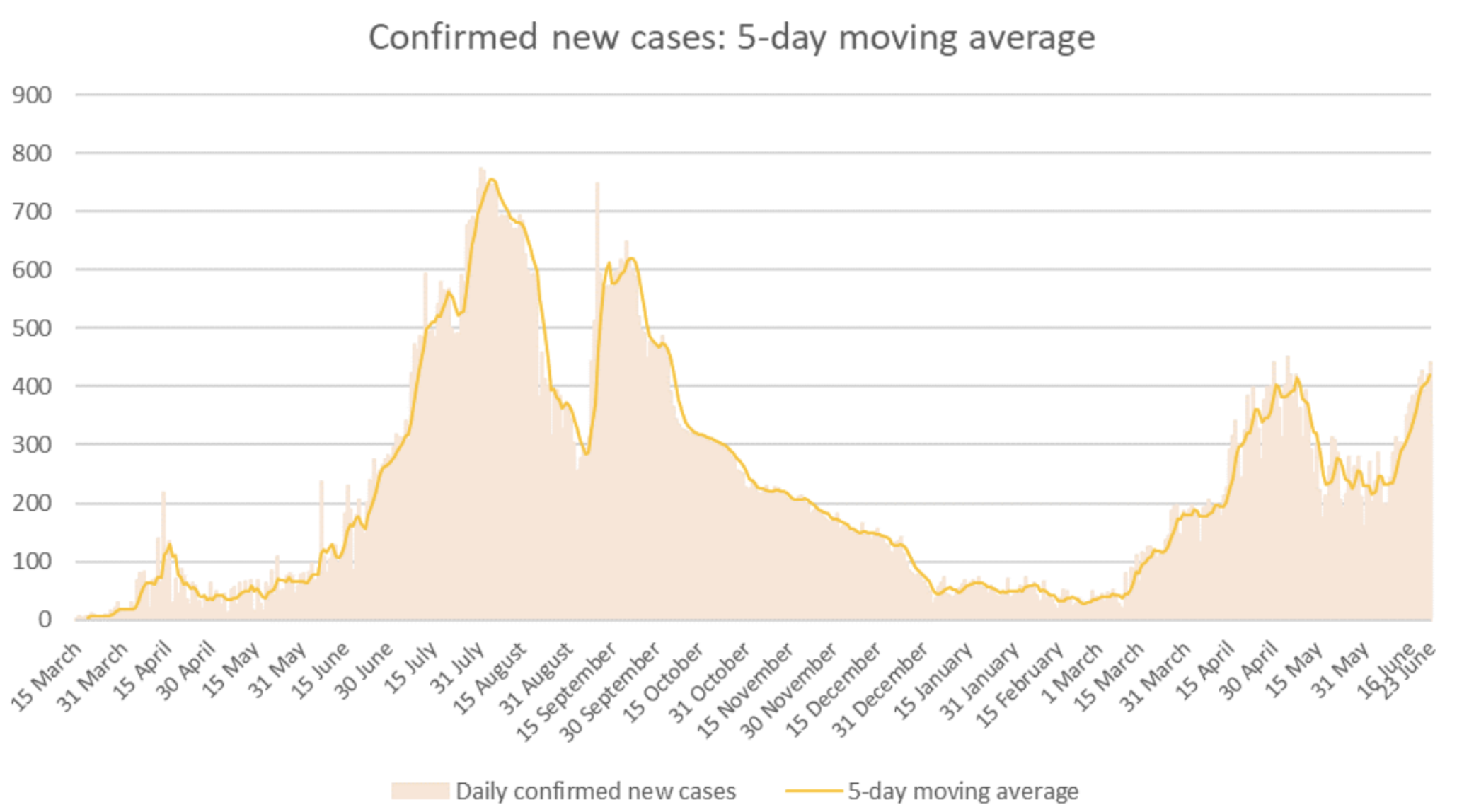 The Delta variant of the coronavirus is causing spikes in cases around the world, including this week, Uzbekistan. “Delta Variant Triggers New Phase in the Pandemic” from the June 25 issue of Science gives some a good overview of its impact. I feel reassured that two-dose AstraZeneca people are protected against hospitalization with the Delta variant. Public health officials in Uzbekistan implemented stricter controls of movement in the city due to an increase in cases. International travel is not impacted but I expect to see more use of masks. The government is also trying to increase vaccination rates by offering vaccines to people 50 and over and university professors.