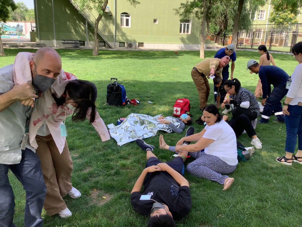 It was coincidental that we held this week a Mass Casualty Incident Drill. Thanks to the US embassy security and medical personnel, we practiced our procedures in the event of many students being injured. The training incident was a wall collapse in the fitness room and our First Responders (teachers trained in first aid) and doctors from the Tashkent International Clinic worked together to transport students from the incident to the triage area and off to hospitals or treated in the TIS Health Unit. In the After Action Review, we reviewed our Lessons Learned and will be processing them next week.