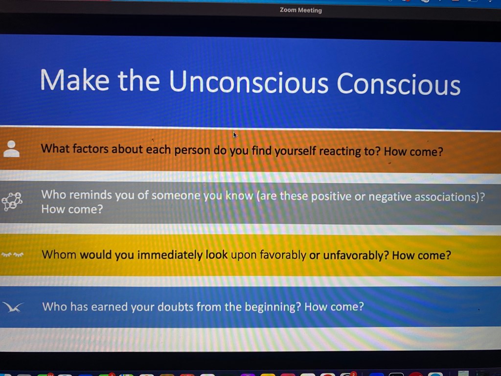 It is human to be biased and my main recruiting takeaway from the workshop will be to Make the Unconscious Conscious, as the slide below mentions. I will ask myself questions about why I like or don’t like a particular person when making hiring decisions.