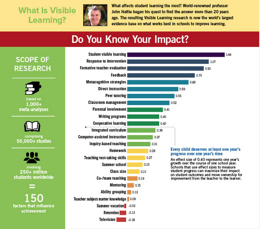 His book was all the rage in education and we offered teachers in one of my previous schools, consultants from Hattie’s Research Group to work with our faculty. We focused on the strategies that had a highly positive impact on student achievement.