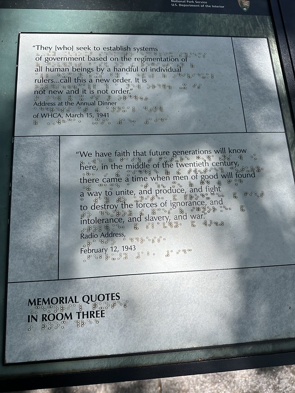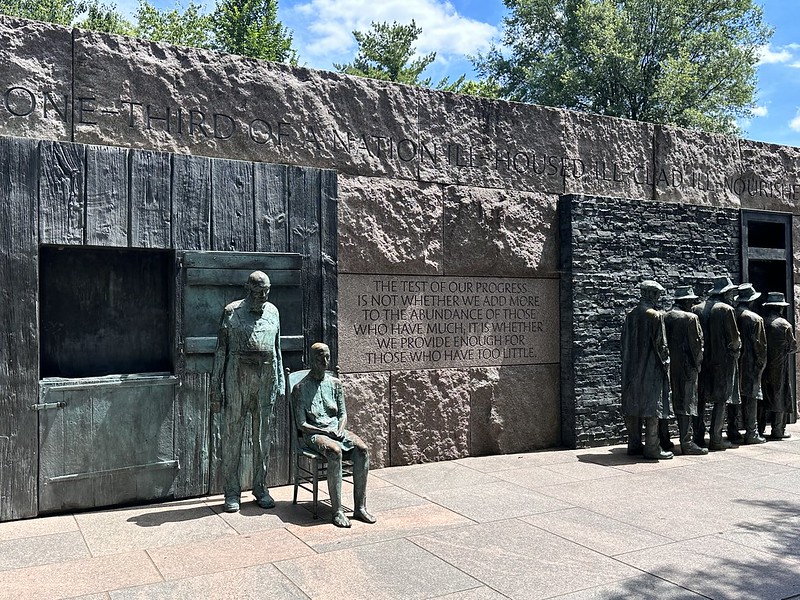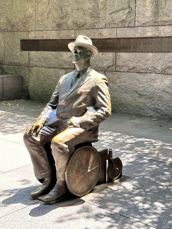 The Franklin D. Roosevelt Memorial is more visited and more prominent in the city. He is the longest-served president, 12 years from 1933 to 1945. The monument has four “rooms” that cover each of his four terms. In reading his quotes and thinking about his accomplishments, the Democratic Party needs another FDR today! Someone who strongly advocates for marginalized populations (poor, immigrants, elderly, etc.) He also had a strong spouse and his wife is also featured with a statue, the only First Lady to have this honor.