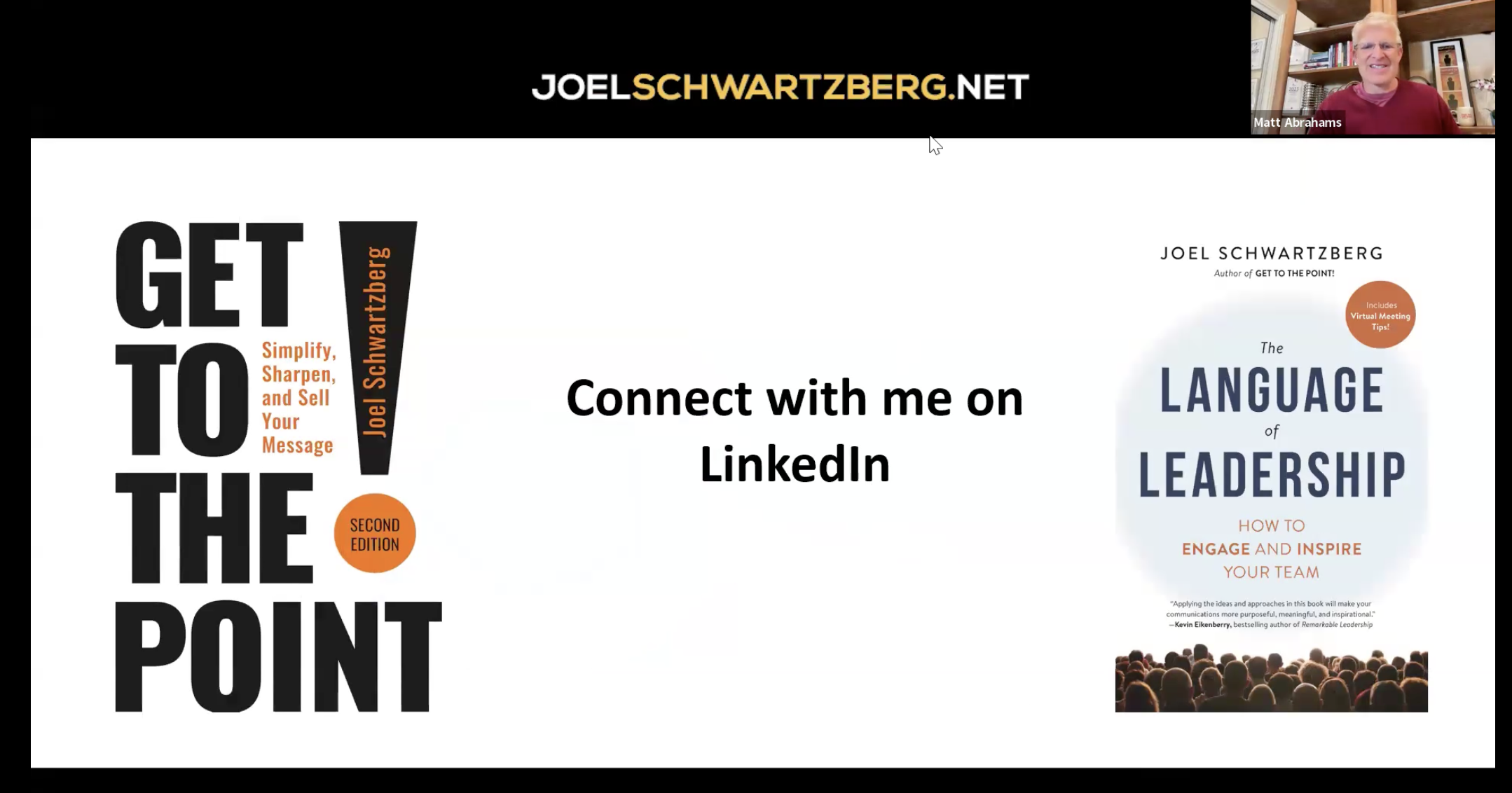 The next valuable workshop was led by Joel Schwartzberg, a workplace communications coach, speaker, and speech writer. My big takeaway from his workshop, “Getting to the Point: Simplify, Sharpen, and Sell Your Most Important Ideas” is that to make an impact with your communications, you need to have a crystal clear POINT. Schwartzberg defines a point as a case or recommendation to make your audience feel, think, and/or do. In his consultive work, he says most people are not clear with their main message. He gives techniques to “sharpen” and deliver your point. I will use his ideas of increasing my volume when I speak, not being afraid of pausing, and know the difference btween telling and selling your story.